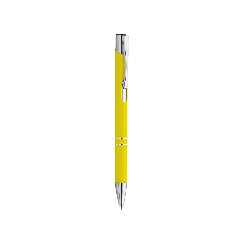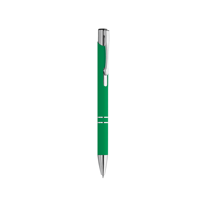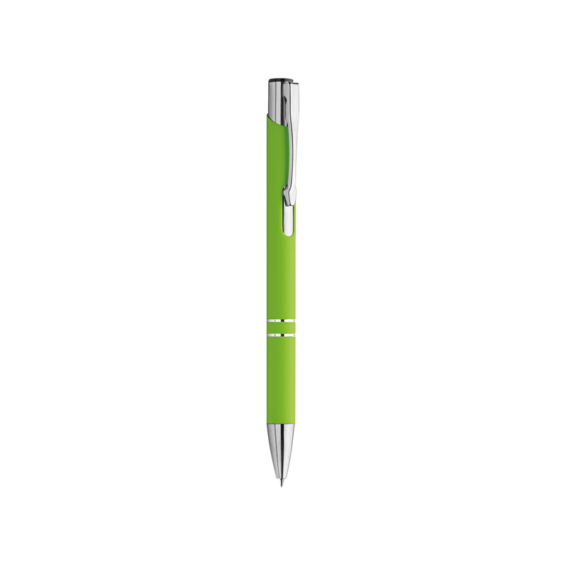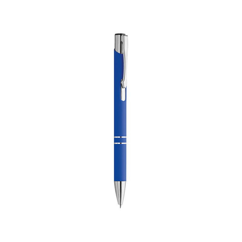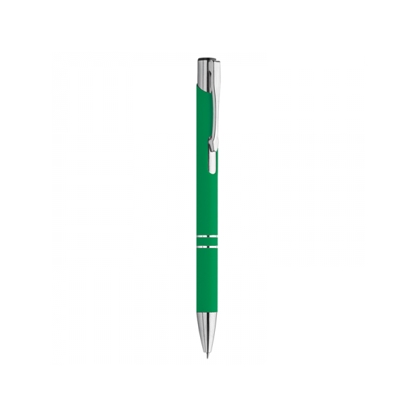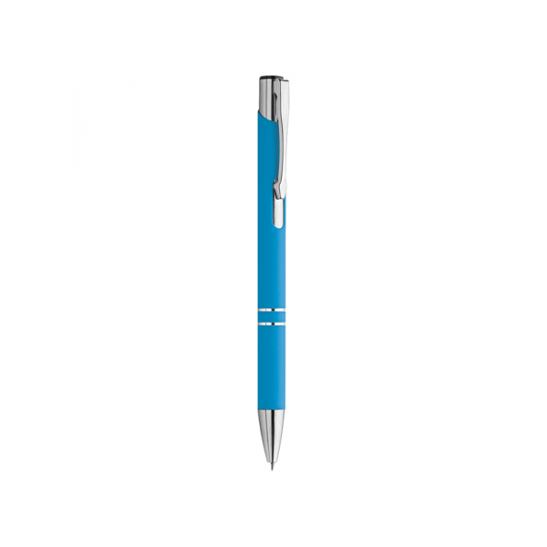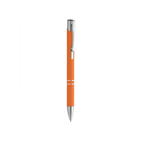 Penna a sfera in metallo, fusto in materiale soft touch, minuterie cromate, refill nero