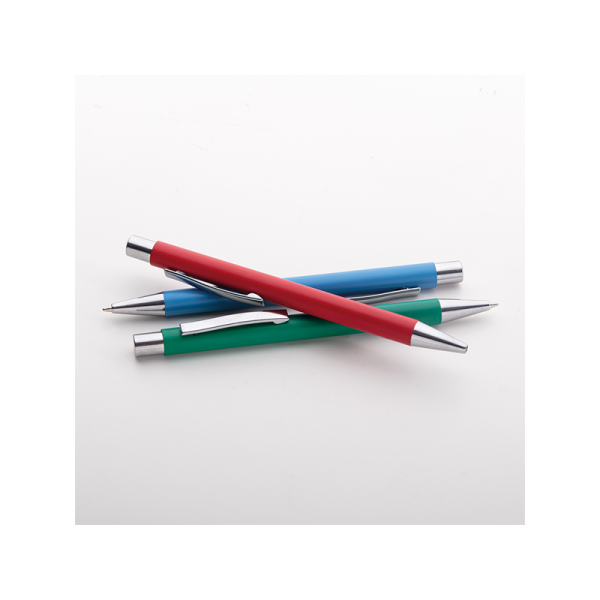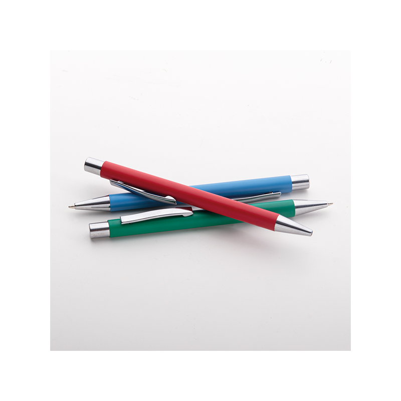 Penna in metallo, refill nero, fusto in metallo satinato, rifinitura opaca, minuterie in metallo cromato