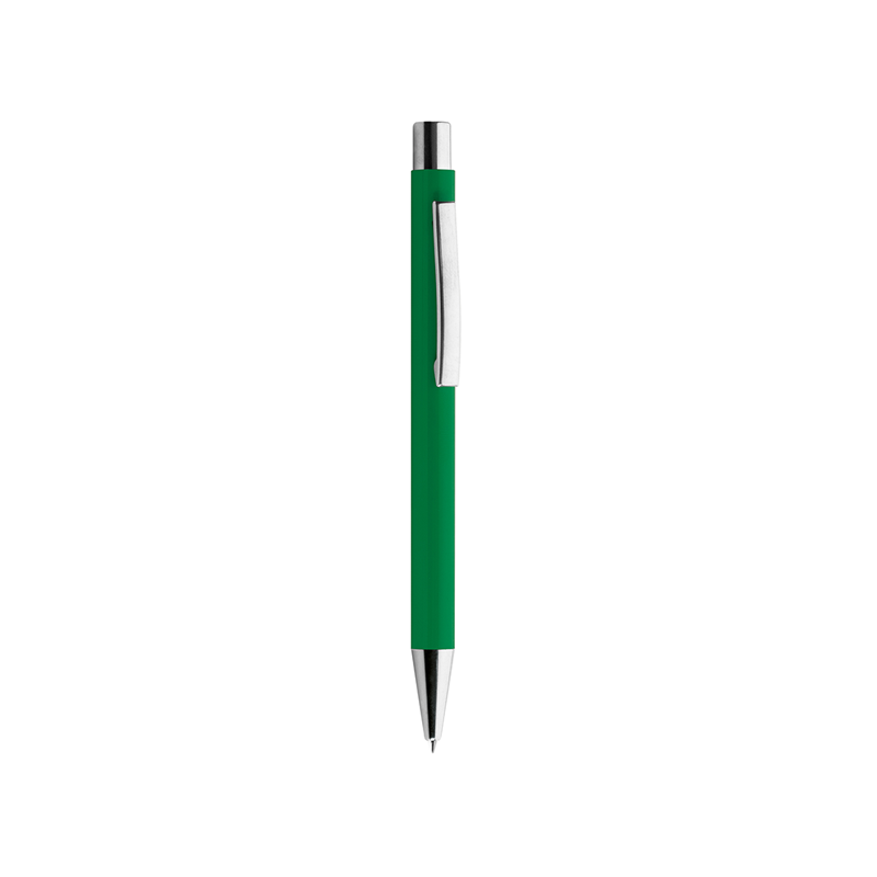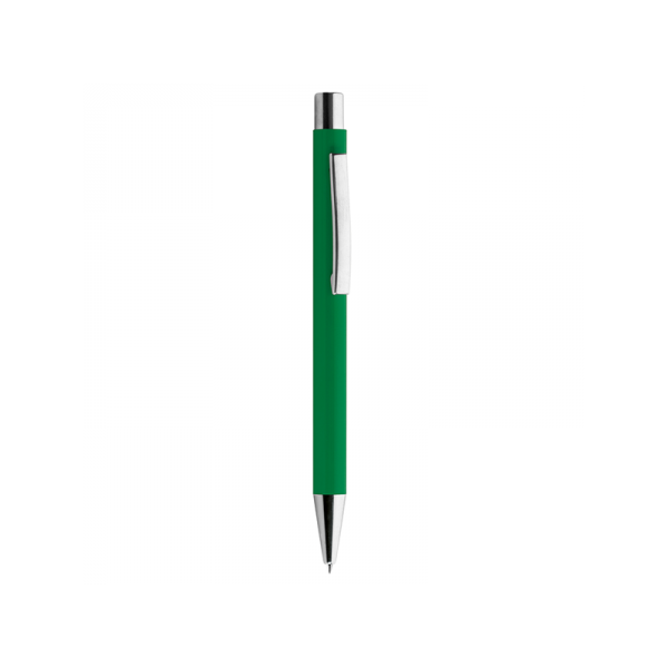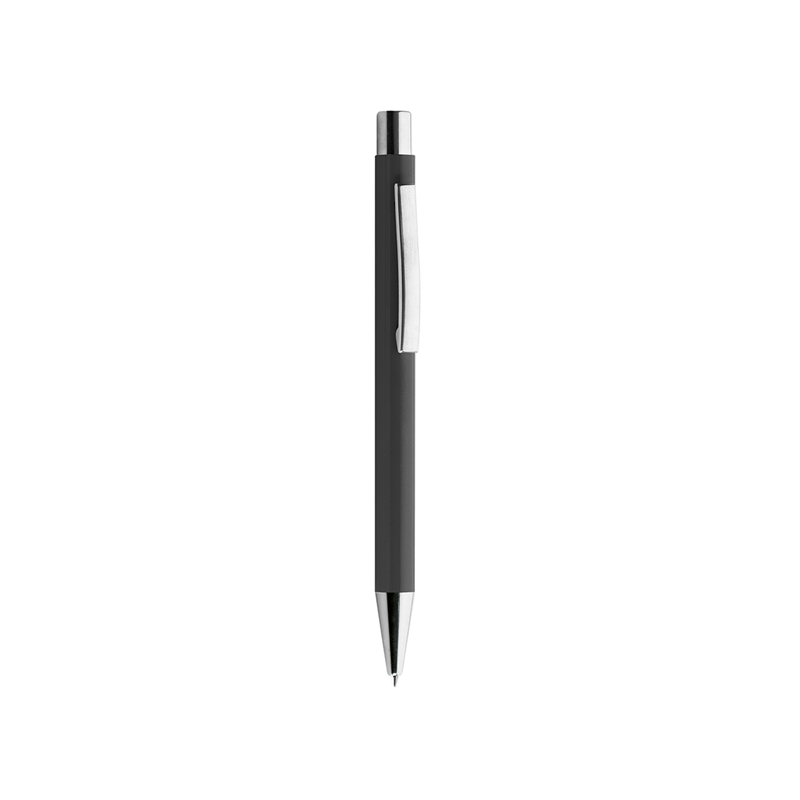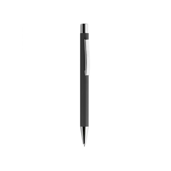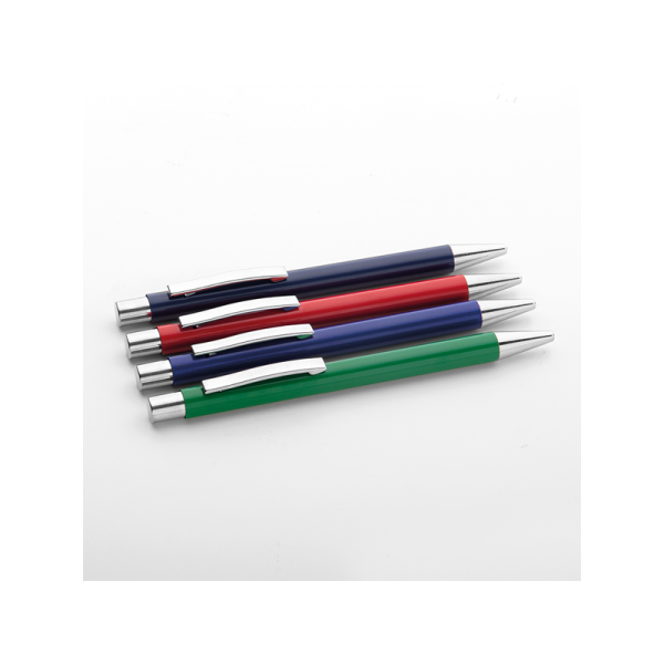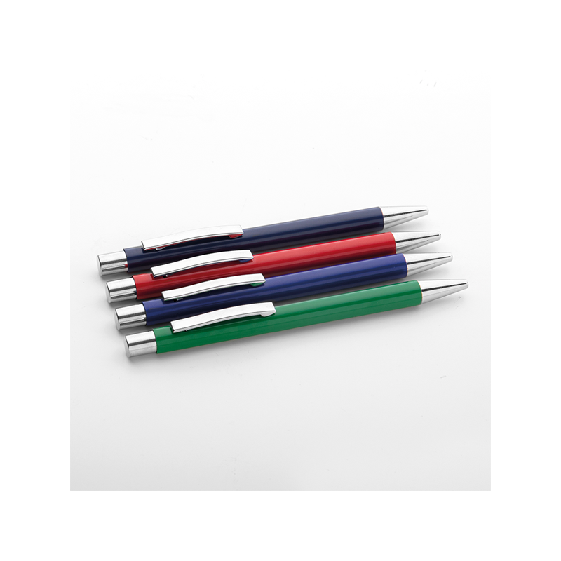 Penna in metallo, refill nero, fusto laccato lucido, minuterie in metallo cromato.