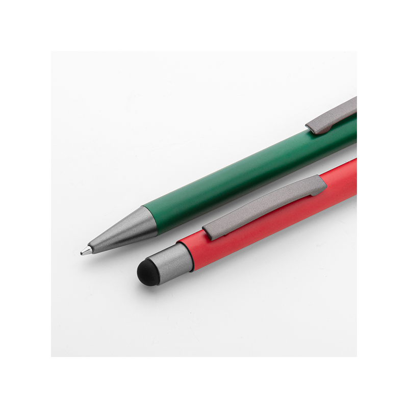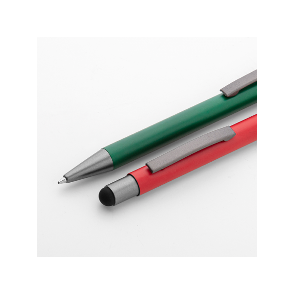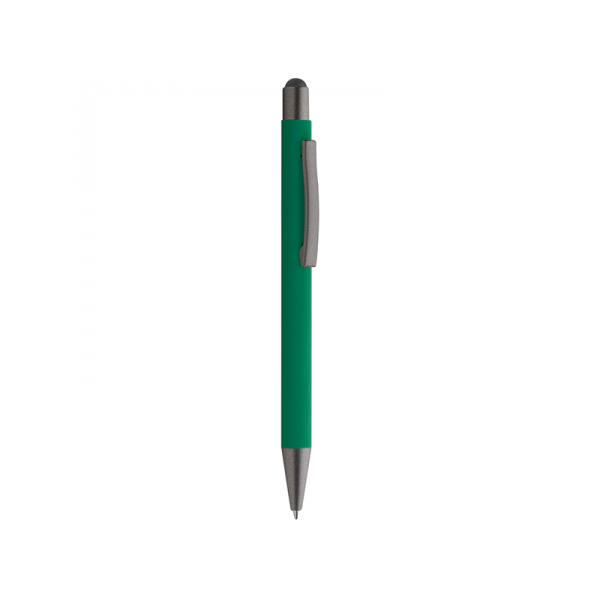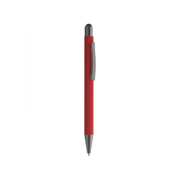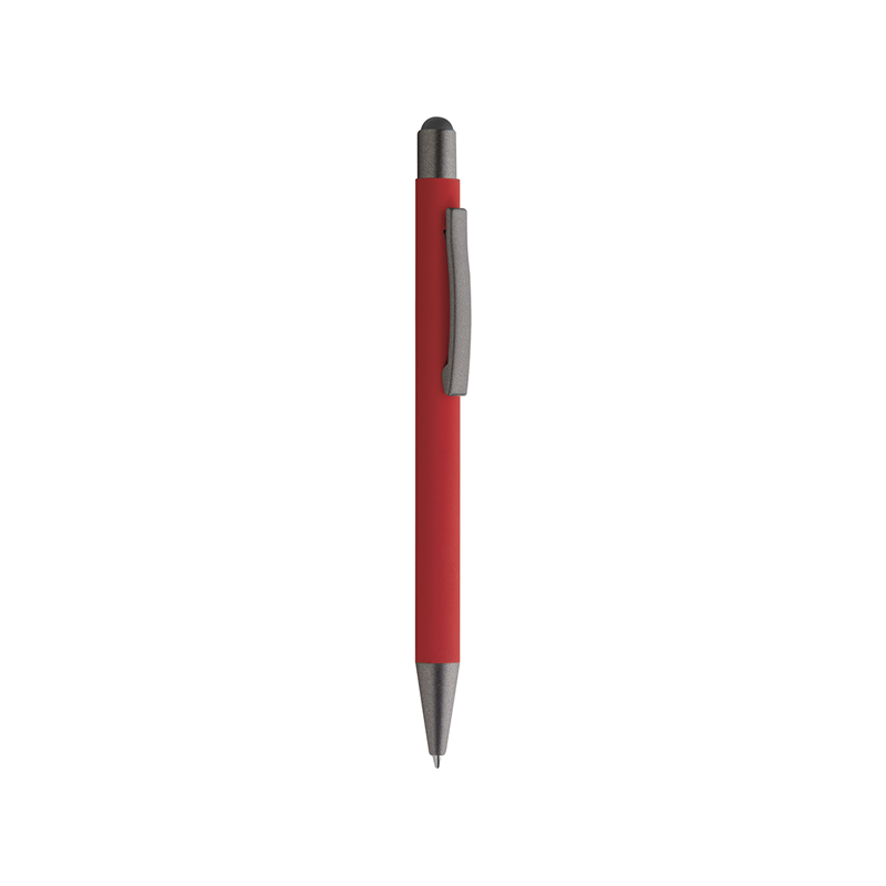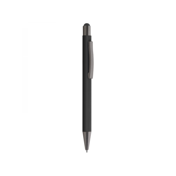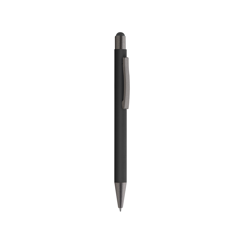 Penna a sfera in metallo, refill nero, fusto matte satinato, finiture in metallo grigio, gomminio touch