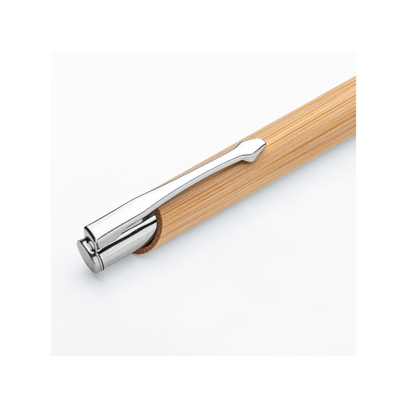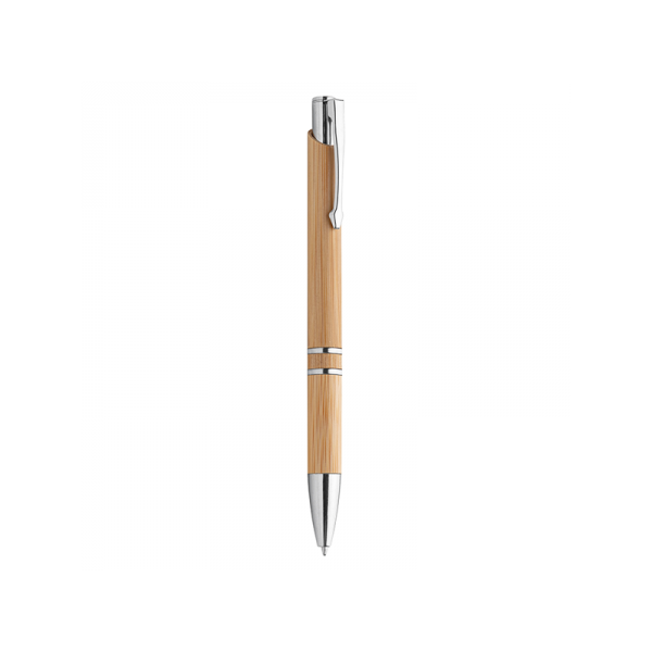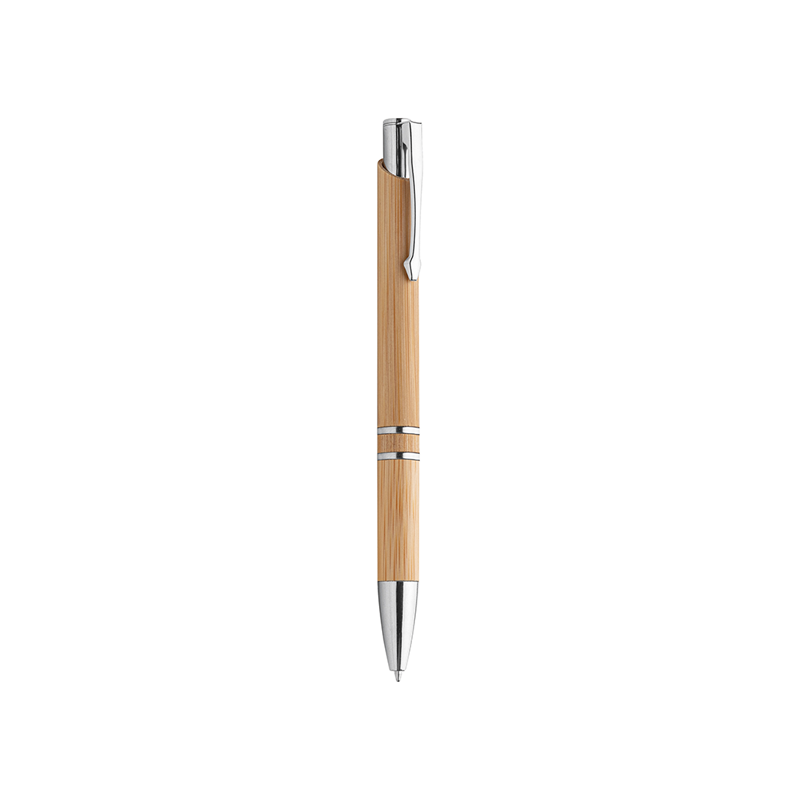 Penna a sfera in bamboo, minuterie in metallo, refill nero.