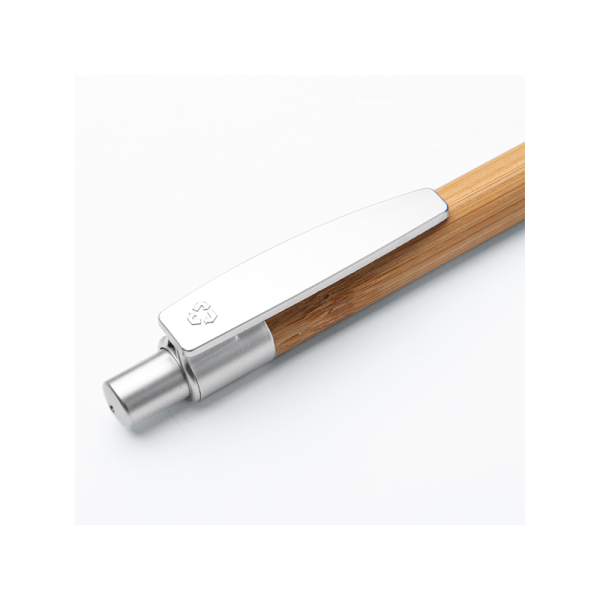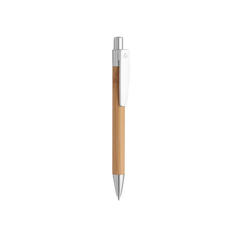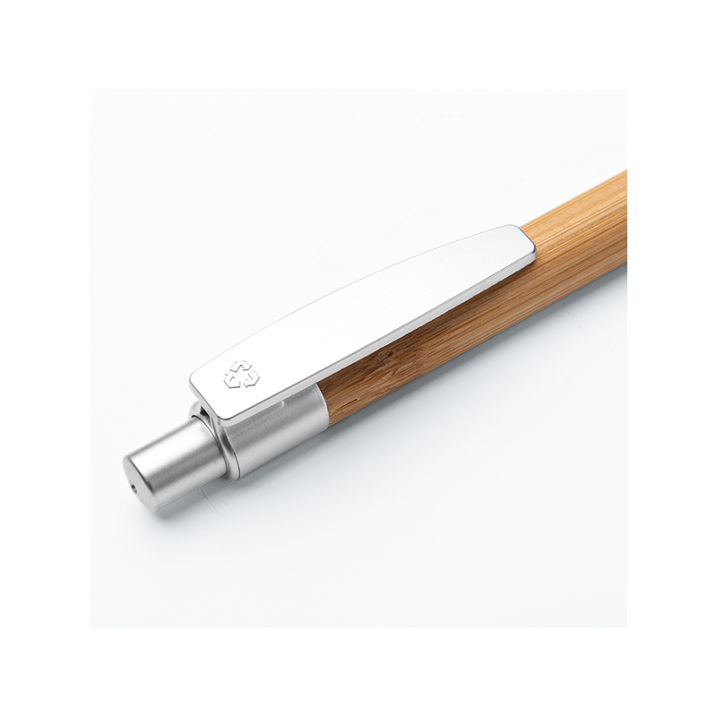 Penna a sfera in bamboo e plastica, minuterie e clip in colore silver, refill nero
