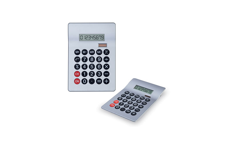 Calcolatrice solare 8 cifre in plastica, display inclinato, astuccio