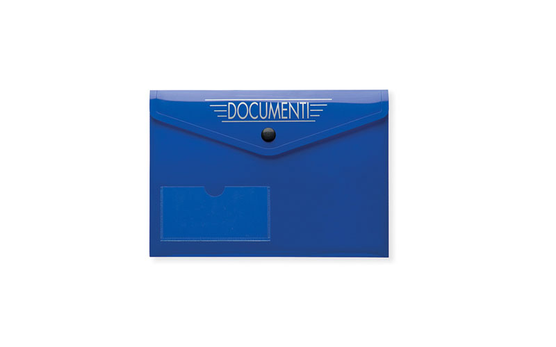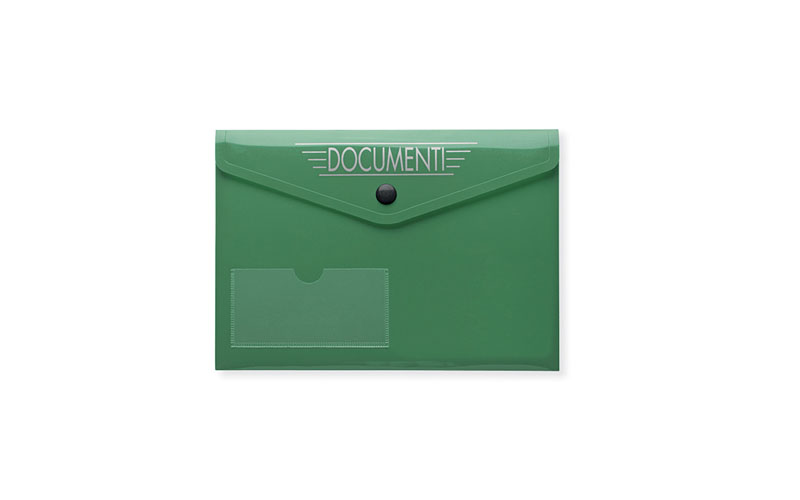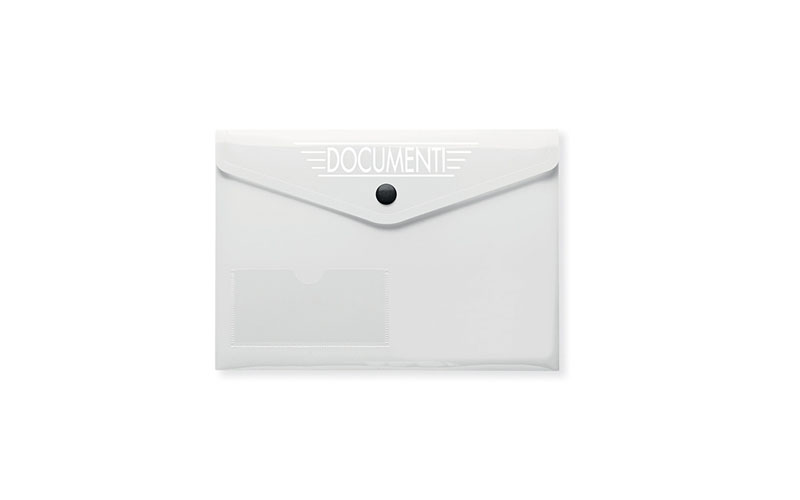 Busta portadocumenti in pvc, tasca esterna porta tessera, chiusura con bottone nero