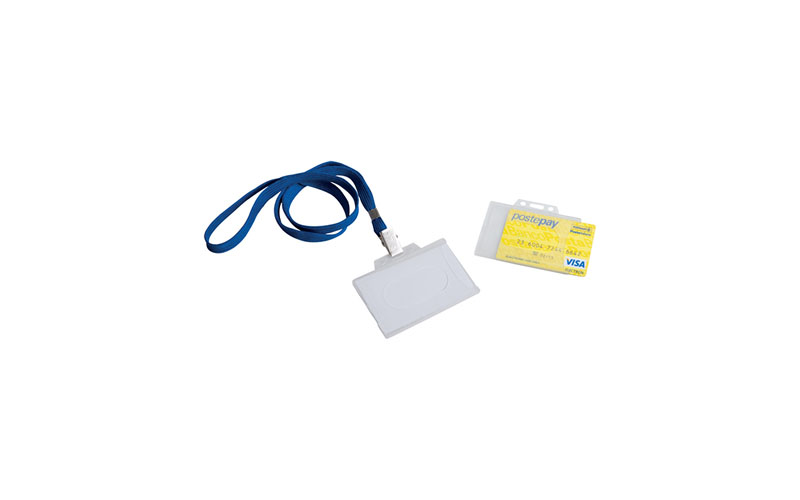 Portabadge in plastica trasparente, nastrino, clip nichelata