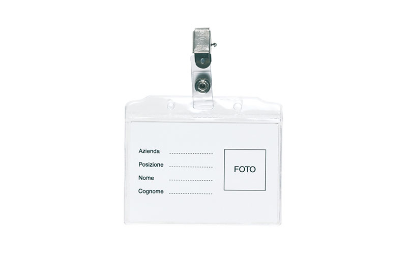 Portabadge in pvc trasparente, clip nichelata, cartoncino