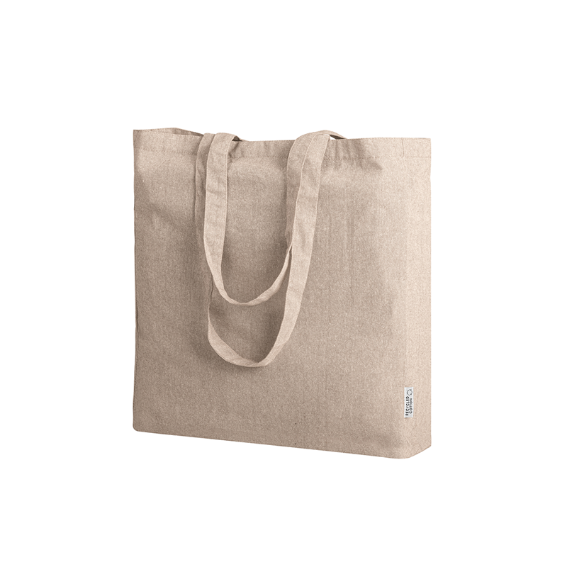 Shopper in cotone riciclato con soffietto, manici lunghi, 150 gr.