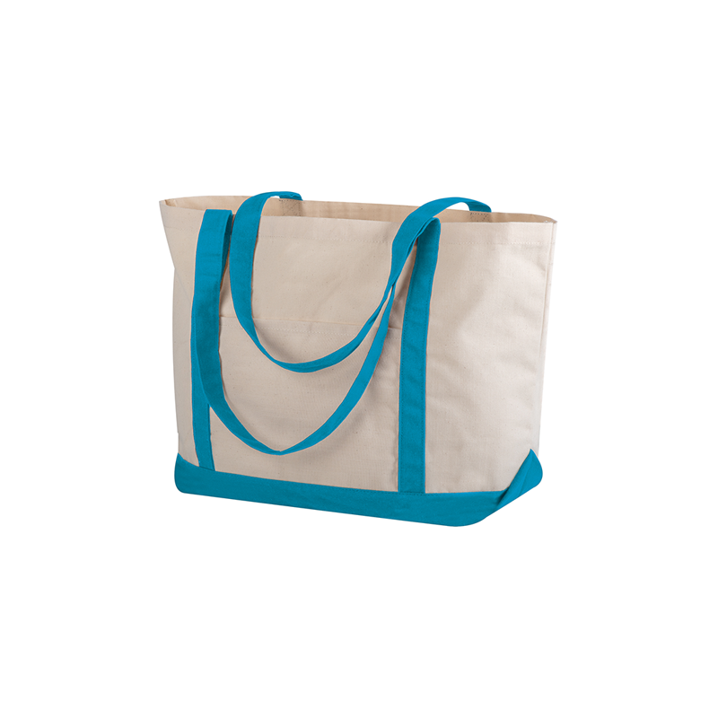 Shopper in cotone canvas, manici lunghi colorati, soffietto, 280 gr