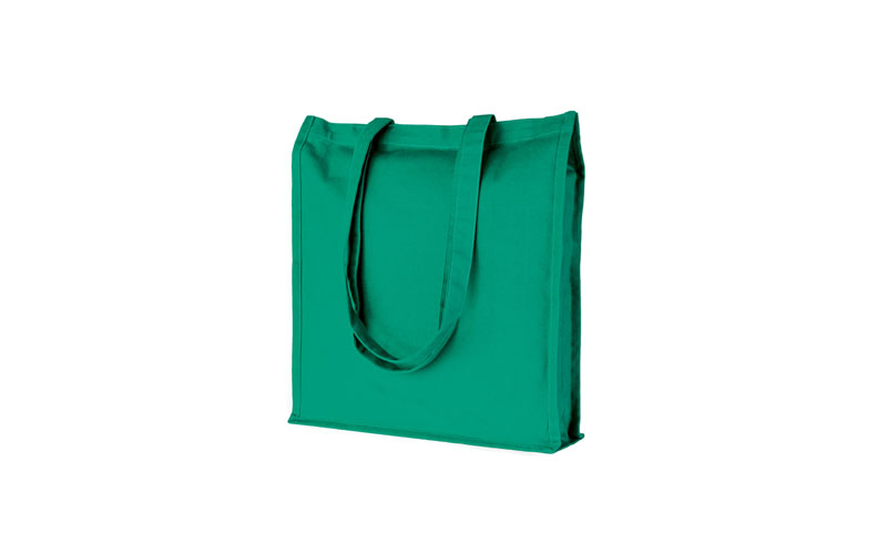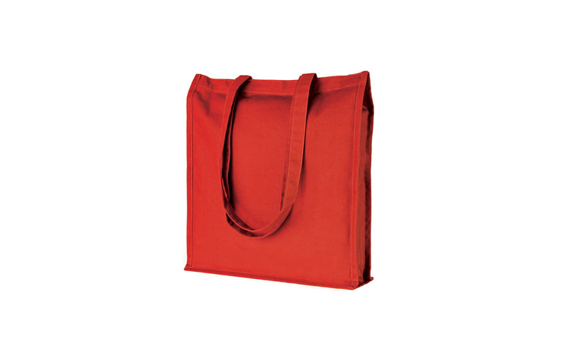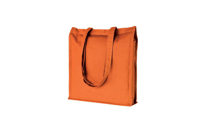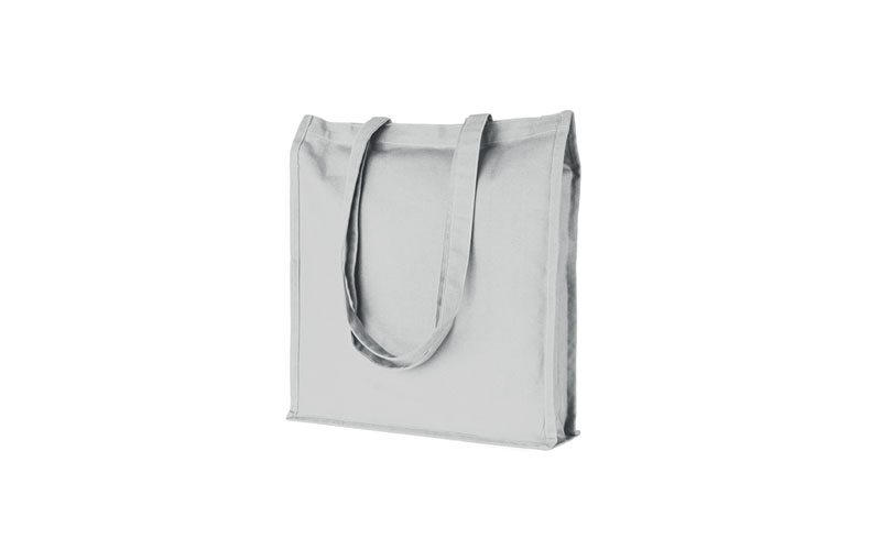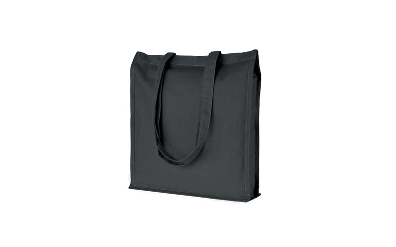 Shopper in cotone, manici lunghi, rifiniture cucite, soffietto