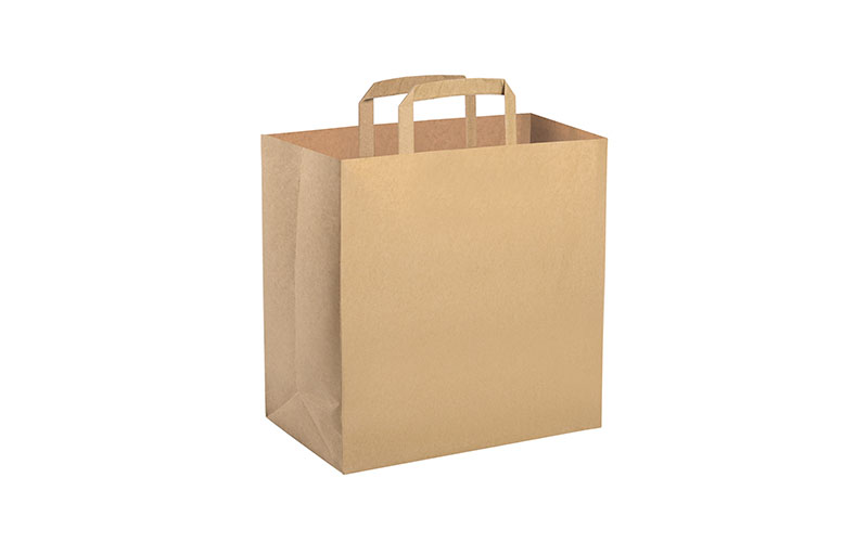 Shopper con soffietto, maniglia piatta, carta avana riciclata 90 gr, portata 5 kg