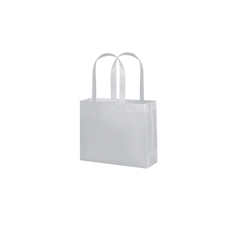 Borsa shopping in tnt laminato, manici lunghi, soffietto, rifiniture termosaldate