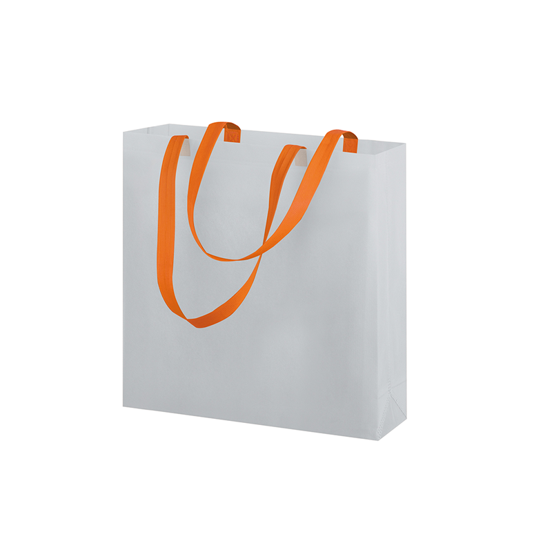borsa shopping TNT, soffietto, manici lunghi, rifiniture termosaldate.