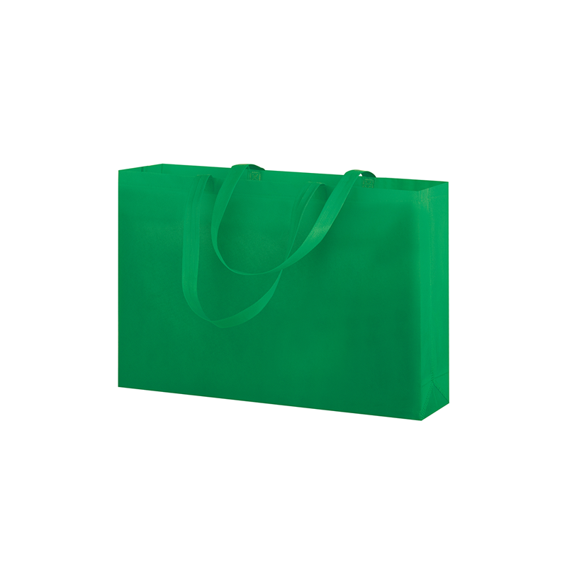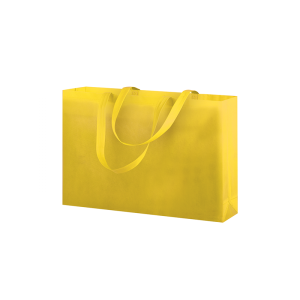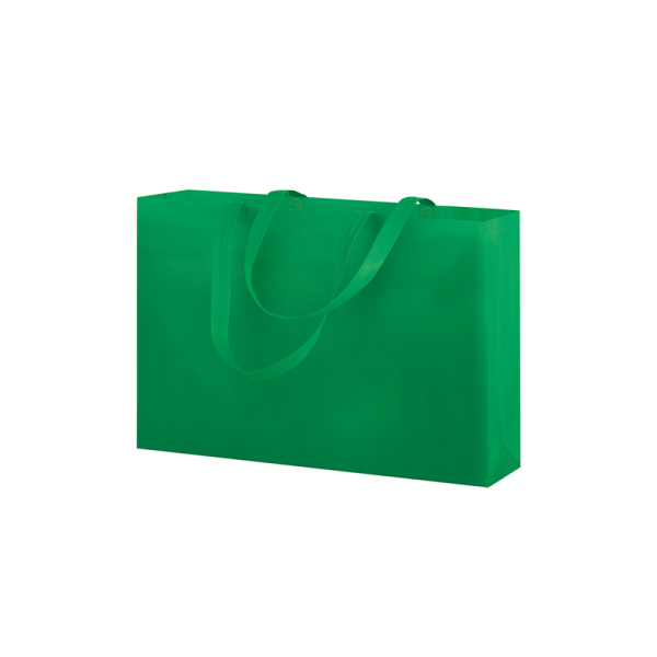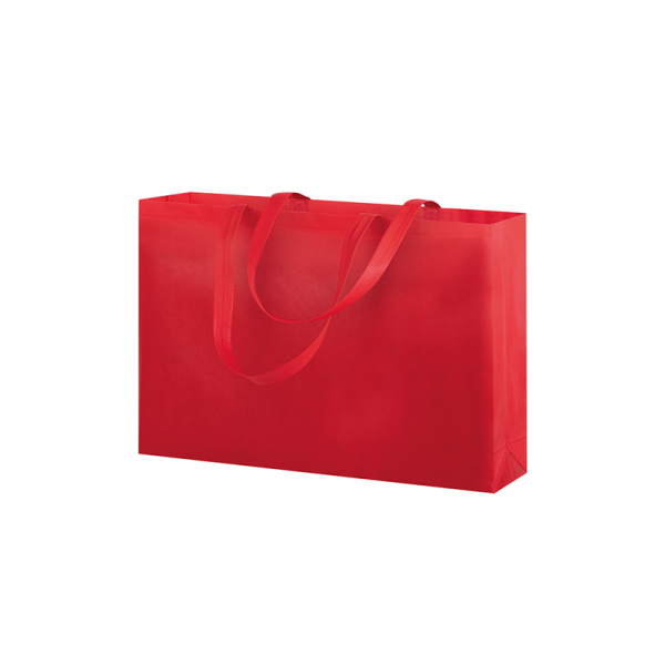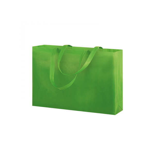 Shopper in TNT, manici lunghi, rifiniture termosaldate.