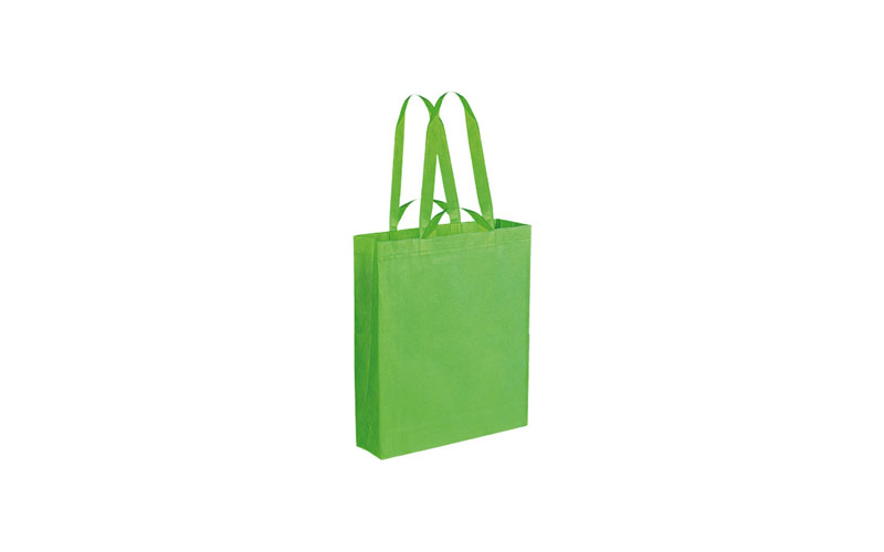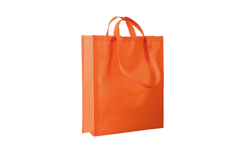 Shopper in TNT, doppi manici lunghi e corti, rifiniture cucite, soffietto