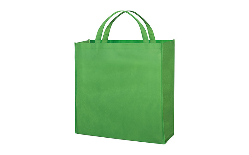 Shopper in TNT, manici corti, rifiniture cucite, soffietto