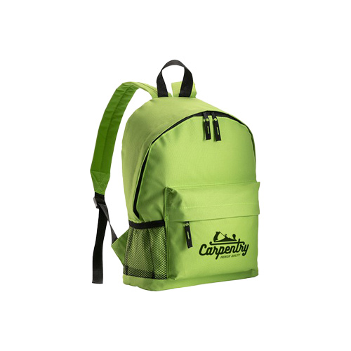 Zaino in poliestere 600D con 3 tasche, di cui una laterale retinata. Spallacci regolabili e schienale imbottito