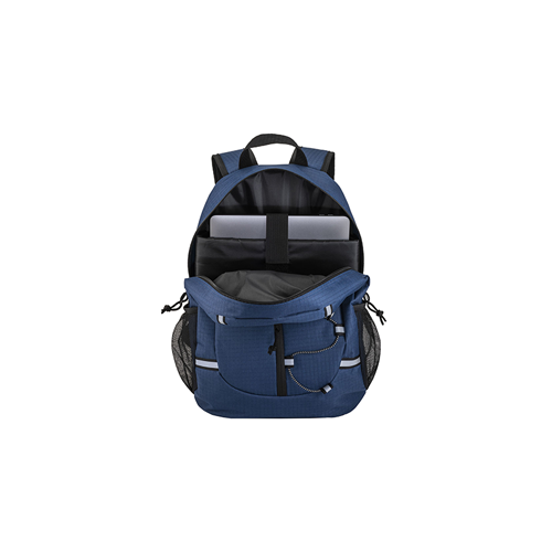 Zaino porta PC in poliestere ripstop, compartimento imbottito per notebook 15'', tasche laterali portabottiglie, schienale e spallacci imbottiti.