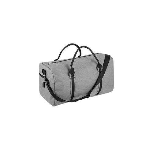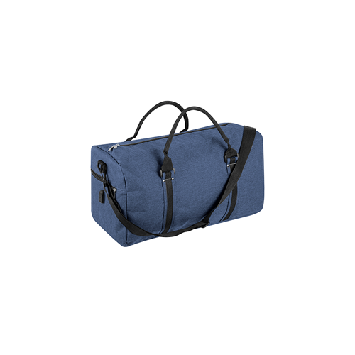 Borsa sport/viaggio in poliestere 600D, manici rinforzati, tracolla removibile, connettore USB, vano porta scarpe laterale, tasca con zip laterale.